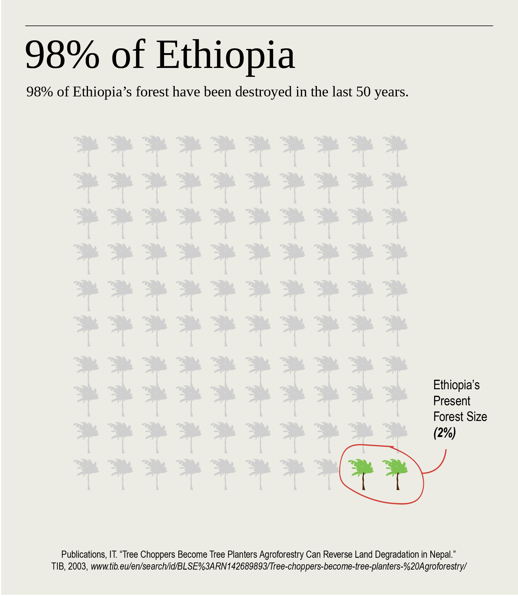 98% of Ethiopia’s forests have been destroyed since 1970.